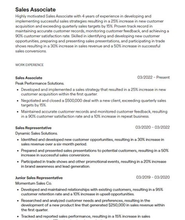 First, show off your previous sales experience and provide details about your accomplishments. Include information about major sales goals you’ve met and promotions you’ve received. Also take the time to elaborate on particular skills you’ve developed over the course of your work as a sales associate.